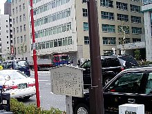 | 北側:交通公社ビルと中央は永代通り | ||