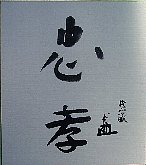 | 普済寺は古志長尾氏と牧野家の菩提寺である。上杉謙信の母は古志長尾氏で、近くの山頂に栖吉城跡がある。 長岡の基礎を築いた初代忠成は、「長岡を見守りたい」との遺言で、長岡が一望できる普済寺裏の急坂を登ったところに埋葬された。 中越地震の直前に、初代藩主牧野忠成候三百五十回忌の法要が普済寺であった。忠孝の文字と花押は、11歳の忠成の自筆である。のびのびした筆跡が美しい。 |