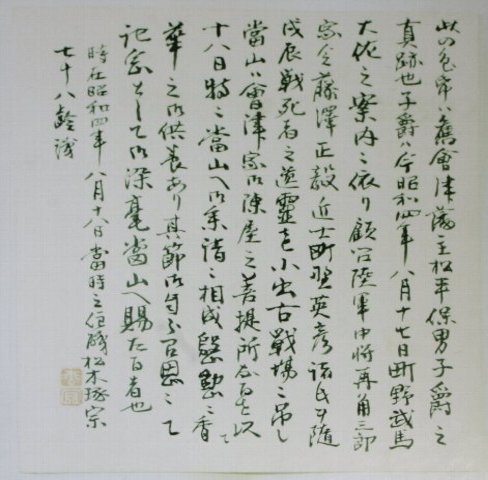 | 色紙の裏は会津藩主松平も当主保男子爵が町野家の子息と訪れたとある |