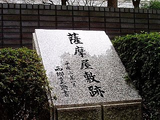 | 薩摩藩上屋敷はセレステインホテルからNECの一帯である。NECは明治30年代からこの地にあり、関東大震災で多くの犠牲者を出したことから、当時としては珍しい4階建のどんな地震にも耐えるビルを建てた。太平洋戦争でも延焼することなく、焼け野原に堂々と立っていた。新しい高層ビルに作り直す時、敷地の一部を開放し、その一角に薩摩屋敷跡の碑を建てた。 |