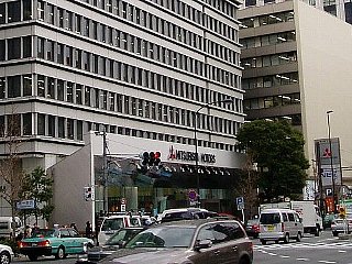 | NECの敷地内に薩摩屋敷跡の碑 | 中央にロケット形のNECビルが見える |