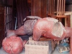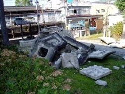 | 山門の仁王像 | 粉々になった山門の灯篭 | |