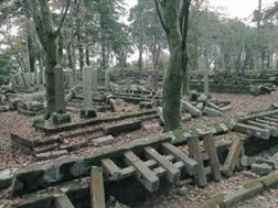 | 崩落の恐れあり山門は通行禁止 | 全て崩れた墓、青シートが『会見の間』付近 | |