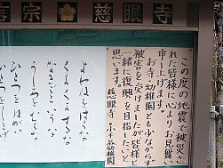 | 山門前の掲示板 | 近くの船岡山西軍墓地も倒壊 | |