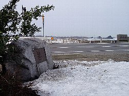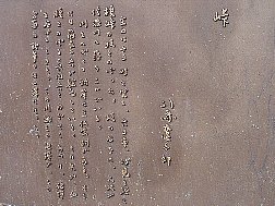 | 「峠」文学碑から対岸の榎峠を見る | 榎峠に向って建つ司馬遼太郎の文学碑 | ||