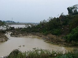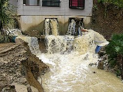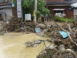 | 浦柄集落の被害、流れるのは朝日川 | ダムになった悲惨な民家 | |