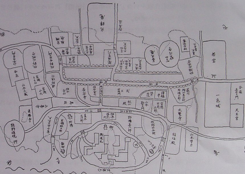 牧野家の菩提寺である光輝庵に伝わる古図。中央やや上に大林勘左衛門、山本勘助養父