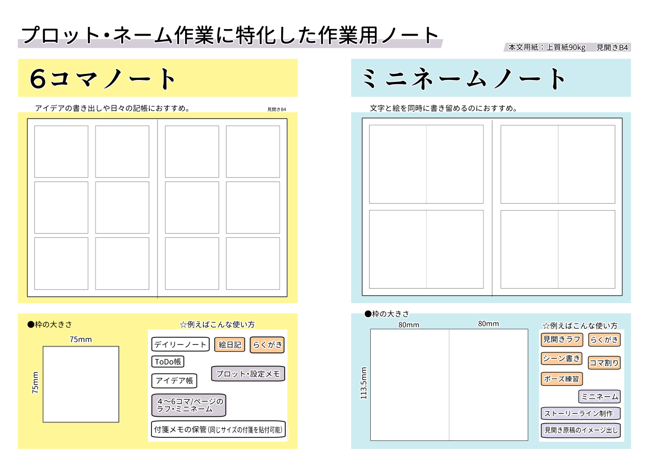 B5サイズの範囲に6コマの枠を印字したノートです。