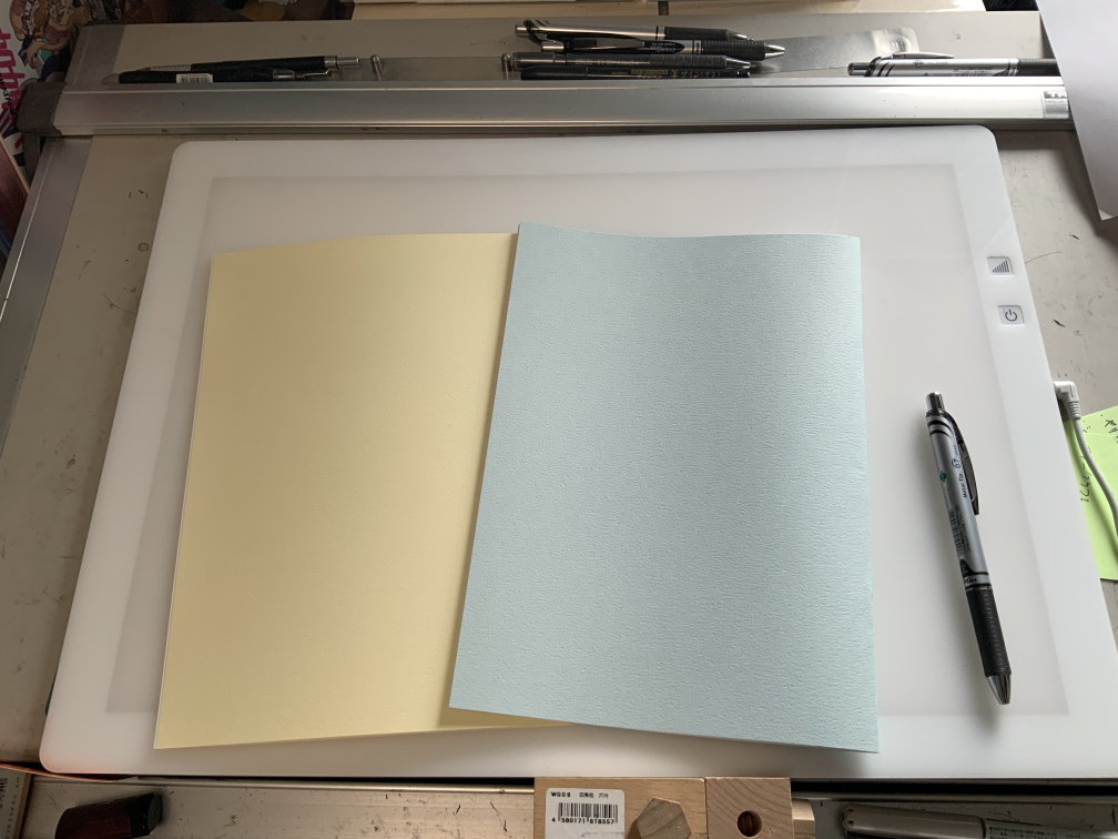 B5サイズの範囲に見開きページを意識したコマを2マス印字したノートです。