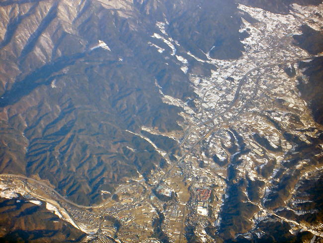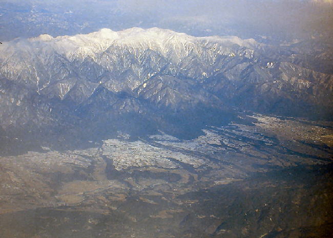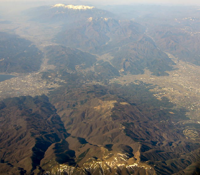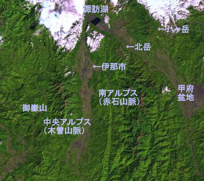 37中央アルプスと伊那谷と南アルプス(NASA衛星画像)