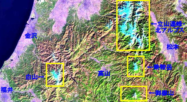 21北アルプス一帯(NASA衛星画像)