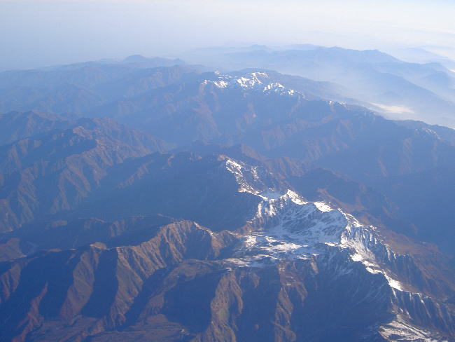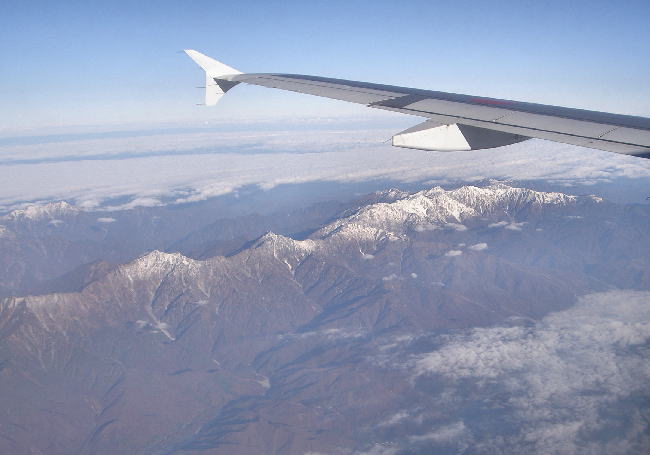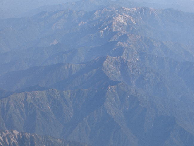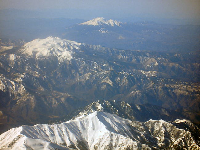 22乗鞍岳(左手前)と北アルプスの山々:中央アルプス上空高度約12,000米から撮影