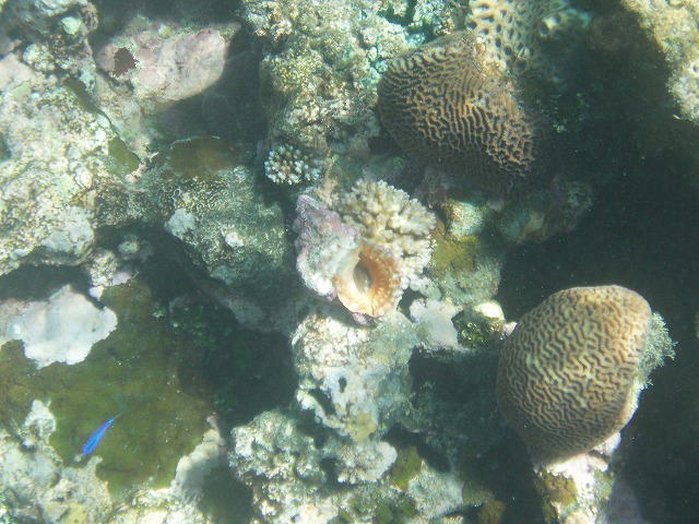珊瑚の間にトリトンシェル見つけました。