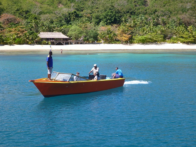 フィジーの離島に行った時は必ず水に浸かりながら上陸しなければなりません。