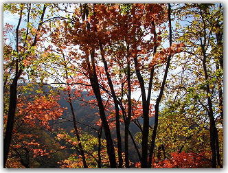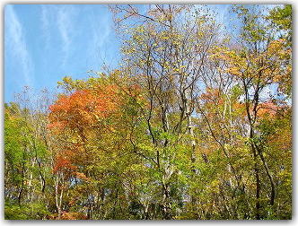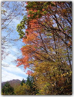 紅葉はちょうど見ごろ、青空に赤や黄色が映えます。