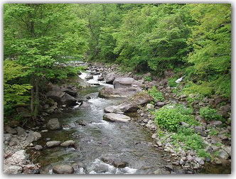 渓流ではカワセミを見ることが出来ます、ブナの森からにじみ出た水は川となりやがて海へ流れます。