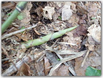 「ミヤマイラクサ」これも深山に行かないとお目にかかれません、鋭い棘がいっぱいあるので素手では採る事が出来ません、炒め物が一番美味しいです、熱を加えると棘がなくなるのが、不思議です。