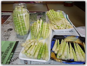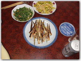 まずは、焼き竹の子、風味がよくて一番美味しい食べ方です。