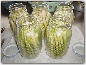 10束くらい生のまま塩漬けして冬の保存食にしておきます。
