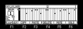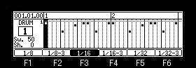 If the ![]() It returns to the event field by ![]() Swing can be set up with Q1 slider. Shift Timing can be set up with Q2 slider. (It is not effective against the recorded event.) Movement of a bar can be performed by the << BAR >> button. It can move quickly by a << BAR >> + DATA wheel. A vertical marker is moved to the next event or previous event on a horizontal marker, by a <STEP> button. When the type of a track is MIDI, a vertical marker is moved to the event of the next or previous by a <STEP> button. Regardless of the value of timing correct, a vertical marker 1 tick moves by a [SHIFT] + DATA wheel. Change of a track can be performed in a [MODE] + DATA wheel. If the [SHIFT] + ![]() The move interval of the vertical marker in a standard display (2 bar displays) Refer to video. Usually, if a DATA wheel is turned, regardless of the value of timing correct, it will move at intervals of 24 ticks. If a DATA wheel is turned pressing the [NOTE REPEAT] button, it will move at the following intervals with the value of timing correct. |