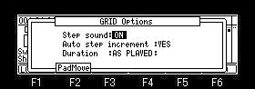 ![]() If the [WINDOW] button is pressed when cursor is in the event field, the window of "GRID Options" will open. ![]() ![]() |