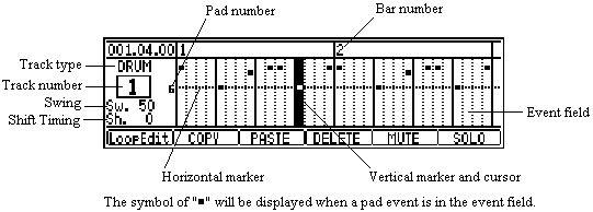 Auto step increment: | If you select YES, after inputting an event by the pad, a vertical marker moves to the right automatically. |