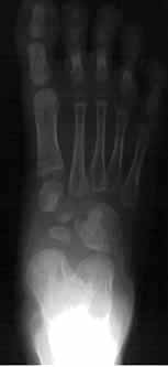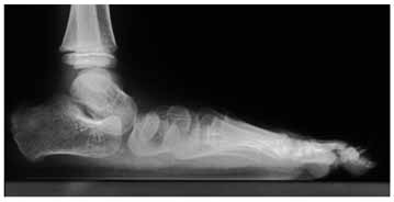 垂直距骨は土踏まずが消失するなど外観は外反扁平足と似ている部分もあるのですが、外反扁平足とは別の疾患です。病理学的にはこの両者の関係について議論のあるところですが、ここでは省略します。垂直距骨では、距骨に対し、舟状骨が上方に完全脱臼し、この二つの骨の間に動きがなくなってしまいます。足全体(足首ではなく、靴の中に入る足の部分)がかたくほとんど動きがありません。視診触診でおよその見当がつきますが、レントゲンの動態撮影(足の様々な位置でレントゲンを撮ること)をとれば診断が確定します。