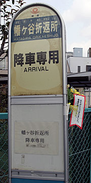 京王線幡ヶ谷駅からも徒歩で5分ほどのこの折返所では、運行区間と所要時分・運賃、そして「渋谷へのお出かけは東急バスで!」と書かれた看板が目を惹く。別に直接競合する交通機関はないのだが。