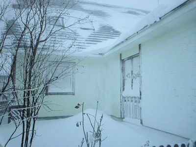 朝起きてびっくり。窓の外が見えないのです。よく見ると夜半からの風雪でガラスの外にびっしりと雪が付着している。気温がマイナス2度と暖かいので、多少べた雪なのだろう。