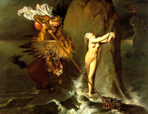 私が若い頃画いた油絵。アングル作「ロジェとアンジェリカ」の部分模写