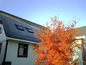 我が家の屋根は少し溶けましたがまだ白いです。シンボルツリーの夏椿の葉も真っ赤になりました。