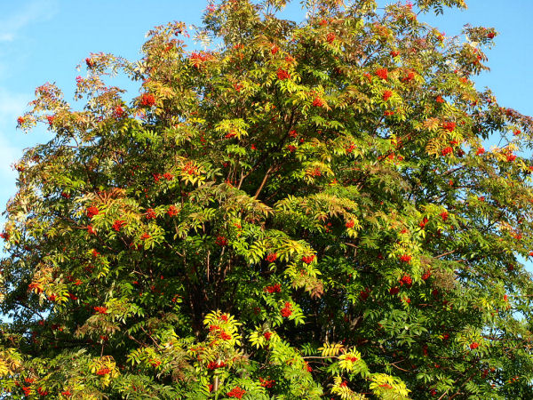 写真は近くの公園で写したナナカマドです。8月の下旬に掲載した時は黄色かった実もすでに真っ赤です。