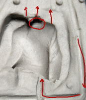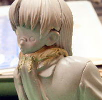首を縮めて顎とマフラーが接する感じに・・・角度は基本的にいじってませんが、若干仰向けの印象が強くなったかな、と。 このへんは元絵の解釈次第ですね・・・ 目が上目遣いなので、顔自体を上に向けるのは別に不自然ではない、ですが。 顔をうつむけたまま、目だけ上に向けると恥らってるようなイメージになるかも・・・ 小道具というかシチュ的にはそれもありなか、と。 それほどはっきりとうつむいた絵ではなさそうなので・・・まあ、このへんは原型のポーズ決めた時点の解釈(前者)で行きます ![]() ![]() ![]() |