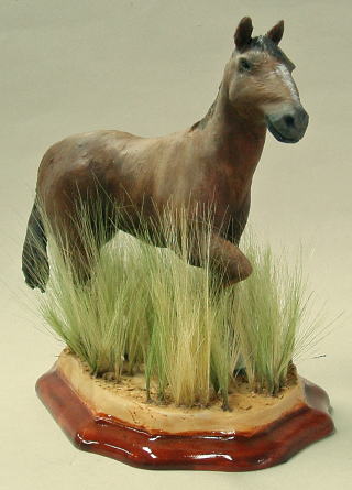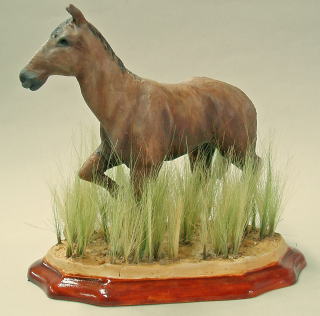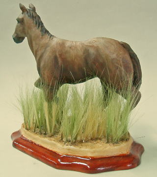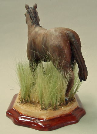 市販の木製ベースにポリパテで地面を作り、フィールドグラスを植えています