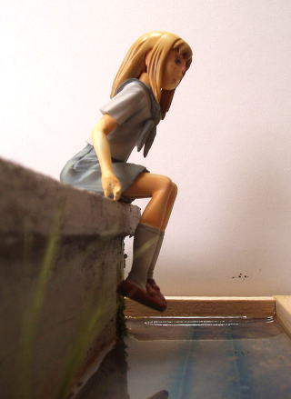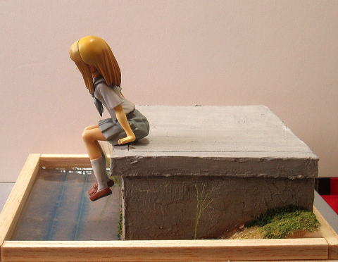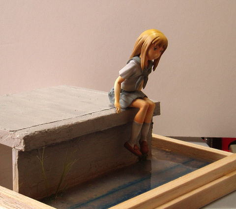 デコパージュは本編に登場する水没した廃駅のイメージで作りましたが、水の深さ、フィギュアのポーズ等は正確な再現ではなく便宜的なものです(汗)