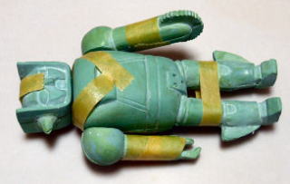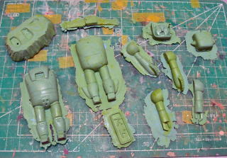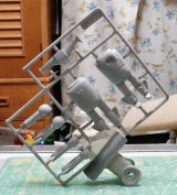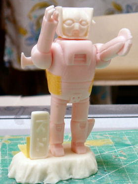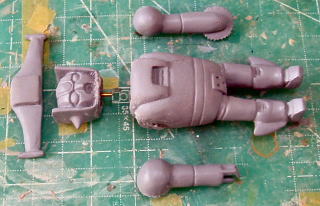 製作手順のまとめ・・・ ![]() グレースカルピーにて一次原型を製作 ![]() ![]() ![]() 分割し、シリコン型にポリパテを塗りつけ、中空化した複製品を得る ![]() 整形し、 ![]() ランナーを配置し ![]() ![]() 二次原型を作り、 ![]() レジンに置き換えて「キット状態」の完成〜♪ ![]() 仮組みするとこうなる・・・ ![]() ちなみにサイズはこれくらい |