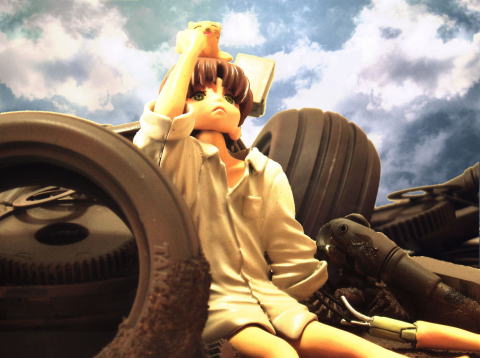 猫、だ。 猫がいる。 見るのははじめてだけれど、視覚情報がインプットされると同時に、補助電脳が自動的にデータベースを検索していた。だから、わたしは「猫」を知っていた。 「おいで」 手をさしのべた。 でも、猫は見向きもせずに走り去った。 わたしはため息をついた。錆びたホイールに背中を預ける。ざらついた錆びのかたまりが砕けて落ちる。静かだ。周囲に人気はない。まるでこの廃棄場自体がスクラップのようだ。 「わたしもね」 この丘の上の廃棄場で、あの人の眠る場所を遠くに見ながら、このまま朽ちていくのだろう。人は死に、機械は壊れる。人には墓地、機械にはごみ捨て場。辻褄は合う。不服はない。なのに、なぜかまたため息が出た。 まなざしを眼下の墓地に投げる。 と、頭の上にやわらかいものが乗ってくる感覚があった。 小さな鳴き声が聞こえる。 上目遣いに見上げると、一匹の子猫がいた。 さっきの猫の子どもだろうか。特殊カーボンファイバー製の毛髪に顔をこすりつけてくる。とても小さい。小児規格のわたしのヘッドもその子にはちょうどいい寝床のようなものだ。春の陽はおだやかで、廃棄場に長時間座り続けていたわたしの毛髪も、そんなには熱くなっていない。むしろ心地よくぬくもっているくらいだろう。 見ると親猫も戻ってきていた。いぶかしむように、探るように、前足でわたしの左腕をひっかいている。 わたしの左腕。上腕から千切れたそれは、廃棄場の赤錆びた地面に、不恰好なオブジェのように横たわっている。感覚情報はもう送られてこない。それでも何本かの光ファイバーケーブルはまだつながっている。人工筋肉に信号を送るくらいはできるだろう。ためしに指先を動かしてみた。親猫はビクンと背を波打たせ、それから低く構えて威嚇するように小さくうなった。それでも、走り去りはしなかった。わたしを警戒してはいないようだ。 それも当然だ、と、わたしは思った。 わたしは人間ではない。生物ですらない。ただの工業製品でしかないのだから、と。 『そんなことを言うものじゃない』 あの人の声が今もメモリの片隅に残っている。 やさしくたしなめる声、どこか悲しげな響き。 でも、あの人はもういない。誰にもあの人を修理することはできない。 ふいに頭上の子猫があくびをした。 ずいぶんと人間じみたあくびだった。 「猫はいいね」 思わず、つぶやいていた。 「猫は猫だものね」 自分は何か、とか、何のために存在するのか、とか、そんな人間まがいの疑問などは考えもしないのだろう。 右手を上げ、指先で子猫に触れた。 想像以上にやわらかく、あたたかかった。 |