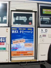 Intake Magic広告掲示した路線バス マフラーにアウターマジック装着