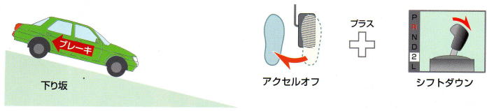 そこで、セカンドへシフトダウンすることにより、エンジンブレーキがよく効いて安全に走行できます。