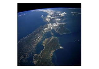 2001年、国際宇宙ステーション(ISS)から見た地球映像、日本列島/中国、四国、関西、近畿、北陸地方など 〈左〉