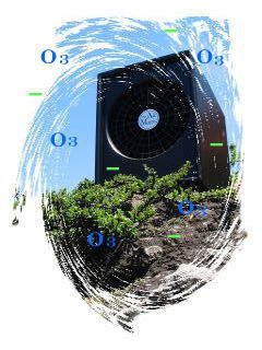 オゾン(O3)と-イオンは大気中の汚染物質を引き寄せるので、