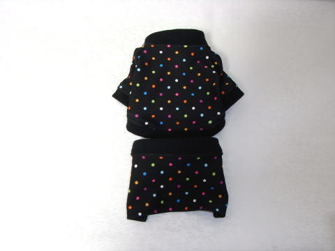水玉ツーピース 3S:\2500 商品番号:1352 サイズ:3S 上 首囲:25cm 胸囲:28cm 袖丈:12cm 着丈:16cm 下 腰囲:28cm スカート丈:11cm 色:ブラック (水玉:6色) 素材 ナイロン100%(リブ:綿100%)