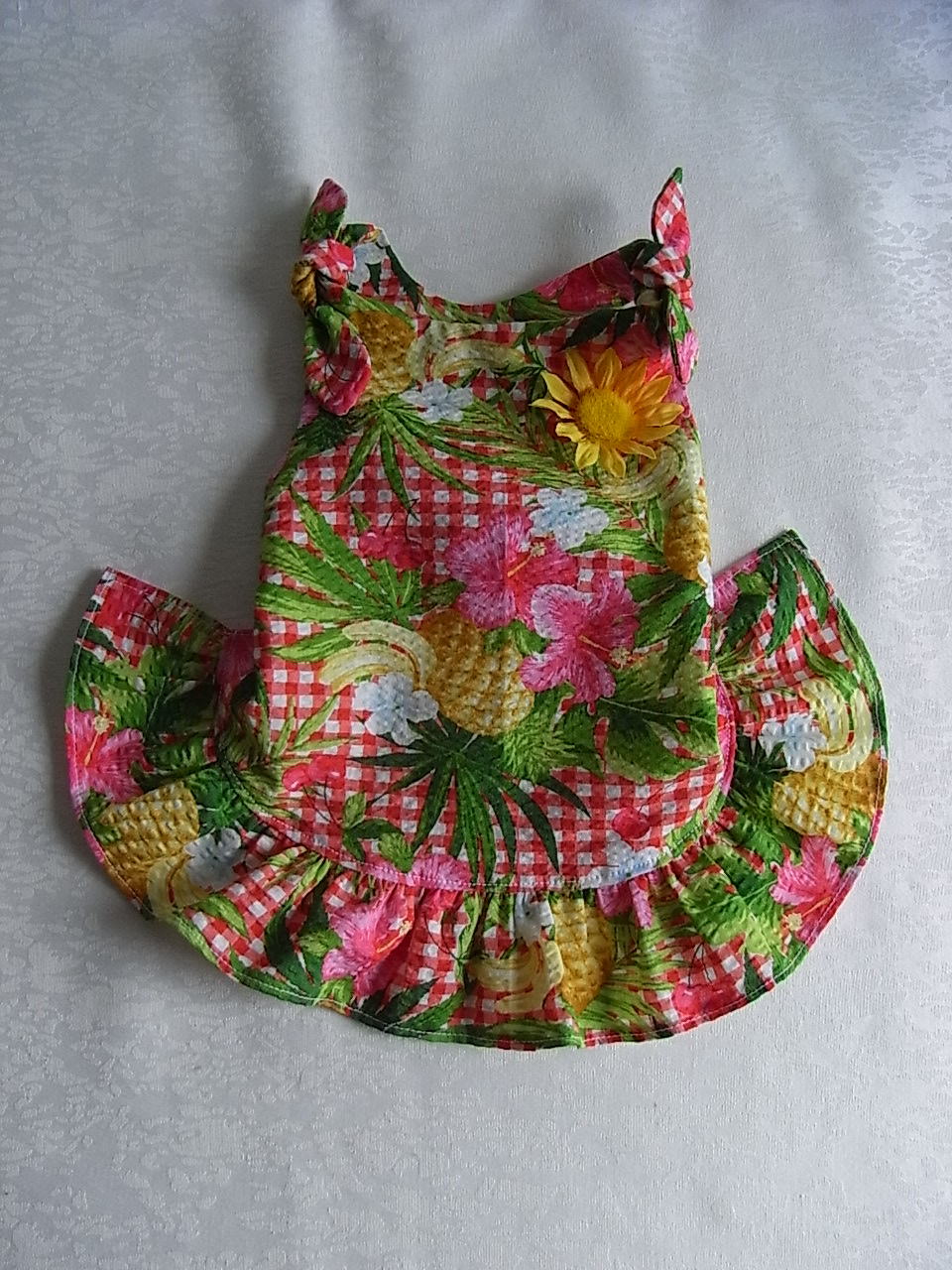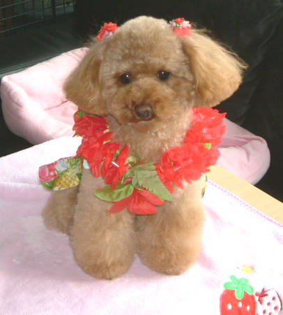 お洋服とおリボンがコーディネートされていてお洒落さんですね〜赤がお似合いです♪