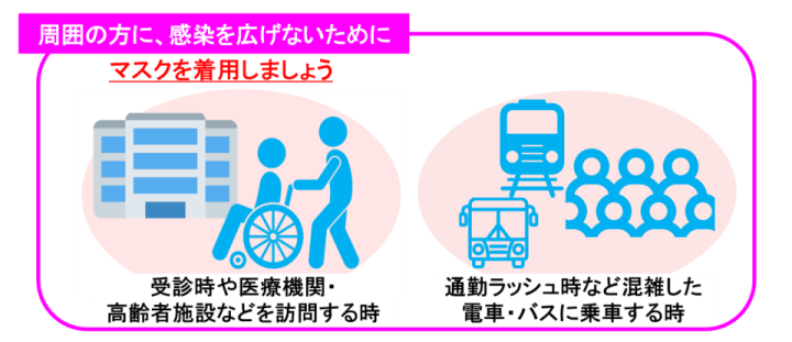 当院に来院される方は、受診・付き添い・面会等、いずれの場合におきましても、これまで通りマスク着用していただけますようお願いいたします。