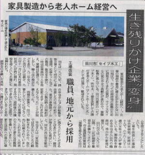 木工(製造業)から介護事業へ転換したということで読売新聞・西日本新聞様に取り上げていただきました。