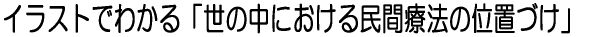 世の中における民間療法の位置づけをイラストで紹介いたします。 是非、ご覧いただければと思います。 ![]() |