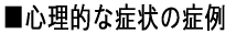 症状を抜粋させて頂きました。心理的な症状、自律神経・ホルモンの症例、筋肉・骨格関連の