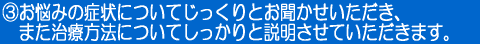 当院では、患者様に早く効果を実感していただくため、多くのページをご覧になられる事を お薦めしております。是非多くのページをご覧になった上でご来院下さい。 皆様が心身共に健康を取り戻されるのを心から楽しみにしております! 特にお読みいただきたいページを下記にご紹介いたします。 病院以外の治療は不安です…初めてお越しになる方のためのQ&A 7つのデメリット 300件を超える患者様の体験談 改善までのプロセス