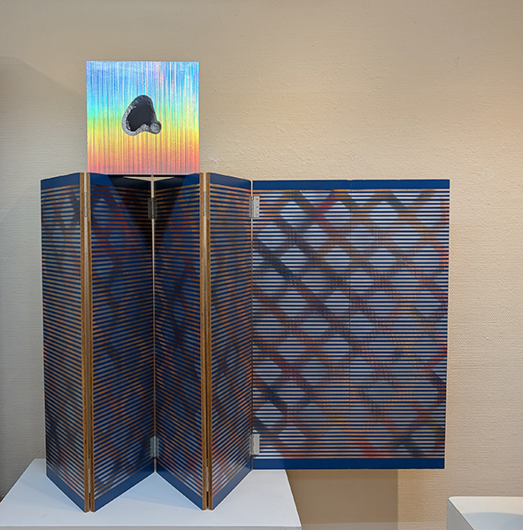 H121×W160×D30cm(屏風型台座含む) ¥250,000(税込) 木材、塗料、ホログラムシート、写真、蝶番