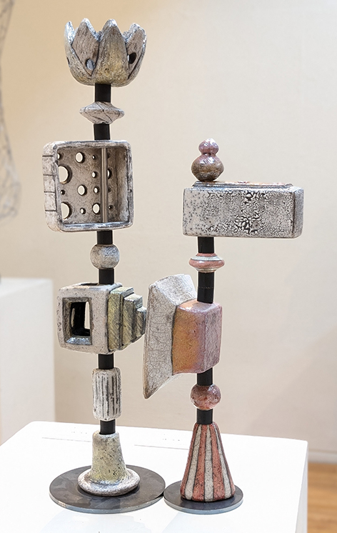 ①H60×W15×D15cm¥75,000(税込) ②H45×W10×D10cm¥55,000(税込) 鉄、陶